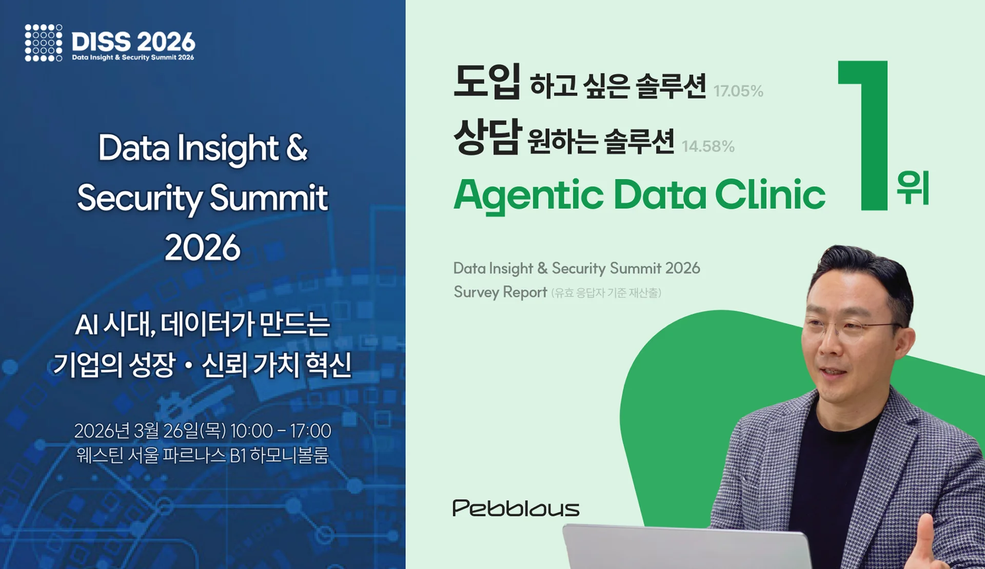또한 지난 3월 DISS(Data Insight & Security Summit) 2026, 페블러스 이주행 대표님이 ‘Physical AI 시대의 데이터 병목을 해결하는 Agentic Data Clinic 솔루션’을 주제로 페블러스의 노하우, 경험담을 솔직히 풀어나갔습니다.
